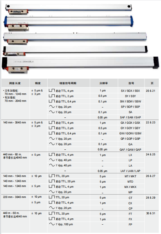 SW/SOW/SSW系列直線光柵尺以及GW/GOW/